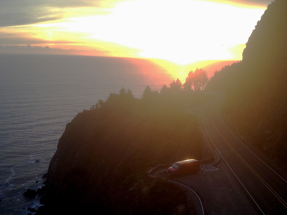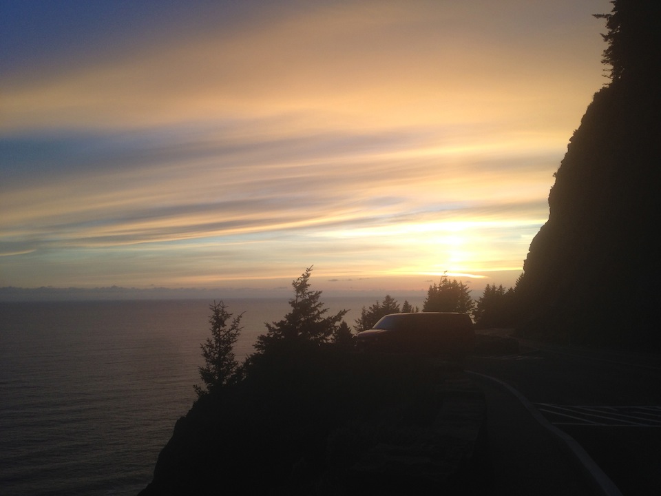 The first night vanlyfing was a total bust (stupid license plate). The cops rolled up on me around 1 or 2 in the morning, put their spot lights through my windshield and added disco lights for drama. Great. So what did I do? I left the parking lot they wanted me out of and went to another spot. Where did I wake up the next morning? In the Cannon Beach police parking lot in front the squad cars.
